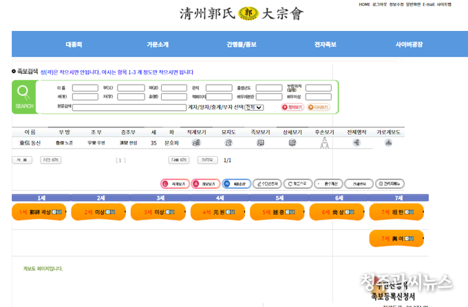 청주곽씨대종회 전자족보에서 나의 가족과 조상에 대한 정보를 확인하고 오류가 있을 경우 수정이 가능하다.